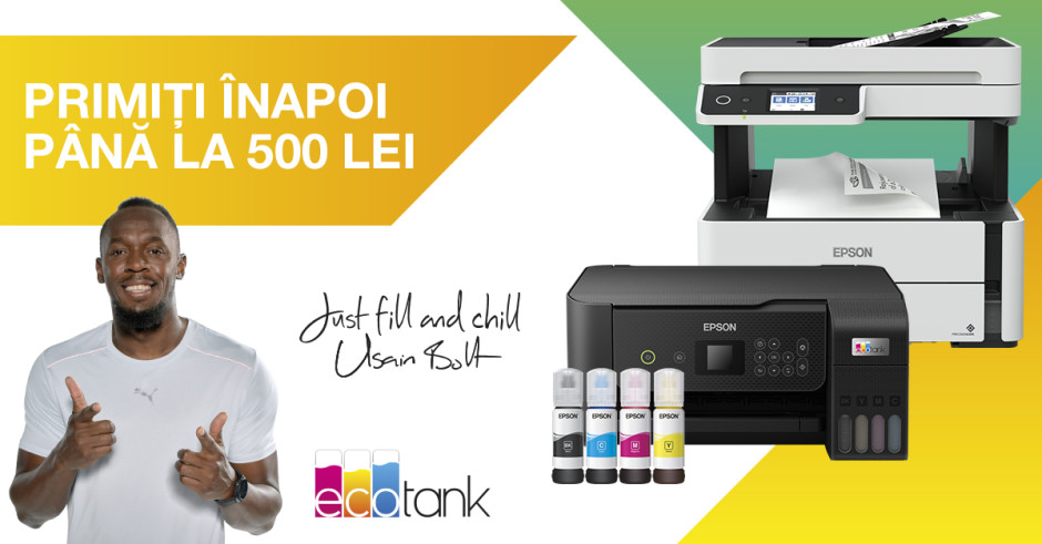 Campania cash-back include o selecție variată de imprimante şi multifuncționale, color și monocrom, din gama EcoTank.